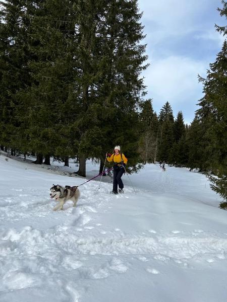 Accompagné d’un chien de traineau, relié à votre taille celui-ci vous propulsera dans les jolis sentiers de nos montagnes.