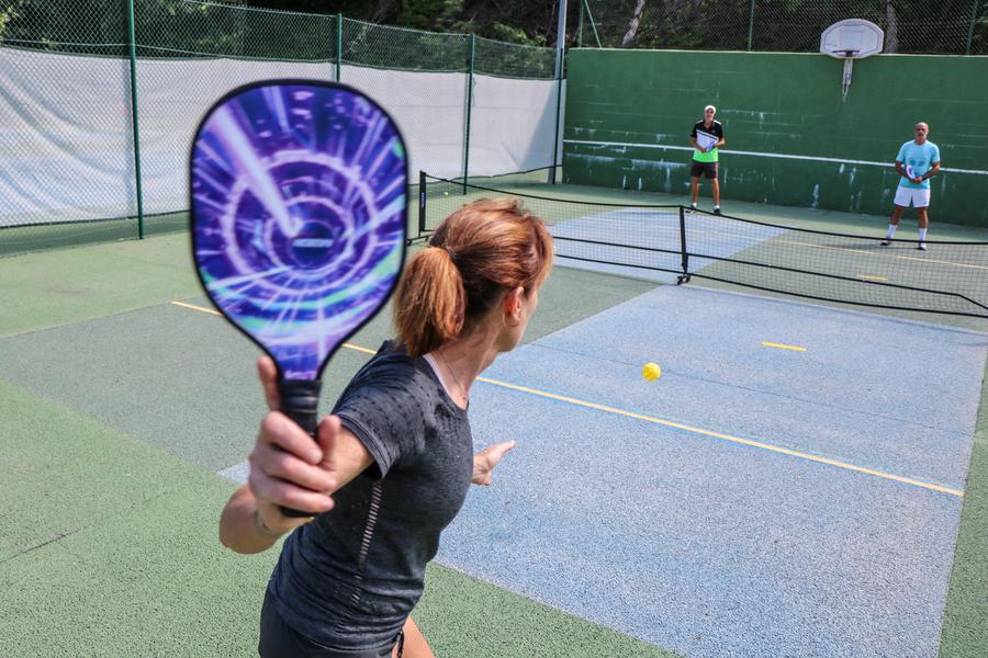 Pickleball is a racket sport played on a small tennis court with a plastic ball. Easier than playing tennis, this activity is accessible to the whole family, for children aged 5 and over.