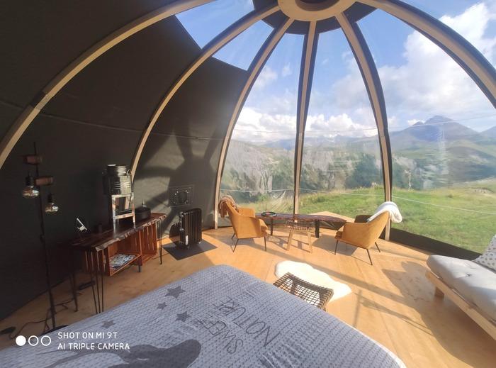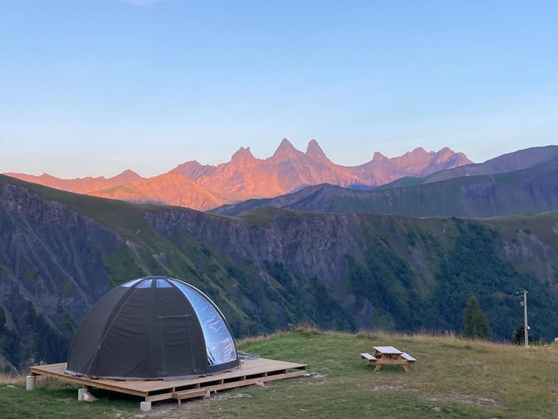 Venez séjourner dans un habitat de glamping* original aux allures de bulle avec tout le confort cosy et chaleureux. Le tout dans un cadre magnifique au cœur du domaine skiable des Sybelles. Face aux Aiguilles d'Arves, profitez du calme ainsi que de la faune et la flore qui vous entourent.