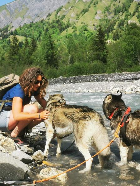 Dankzij een speciale uitrusting zijn wandelaars via hun middel verbonden met een sledehond. Het is een originele manier om de bergen te ontdekken, in gezelschap van deze dappere honden. Je gaat niet alleen op pad! De musher is je gids en deelt graag zijn passie met je. Je leert meer over het leven van een roedel en het karakter van deze zeer bijzondere honden. De pauzes zijn een gelegenheid om de honden te knuffelen en foto's te maken, om deze onvergetelijke momenten vast te leggen. Van een gezinswandeling tot een sportieve tocht: ontdek onze prachtige bergen in gezelschap van een Scandinavische hond.