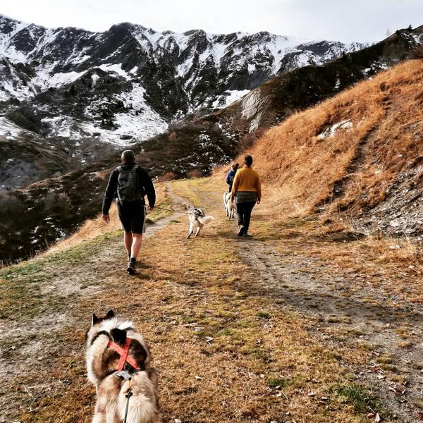 Profiteer van een wandeltocht met honden. Dankzij een speciale uitrusting zijn wandelaars via hun middel verbonden met een sledehond. Het is een originele manier om de bergen te ontdekken, in gezelschap van deze dappere honden.
