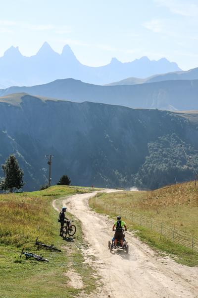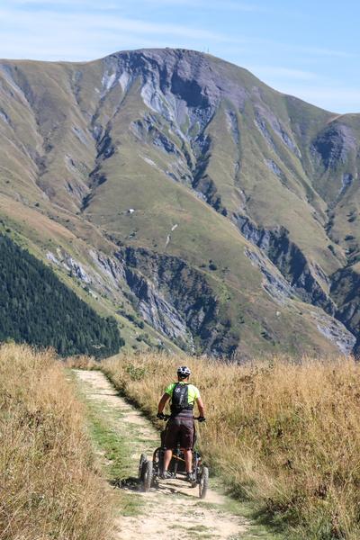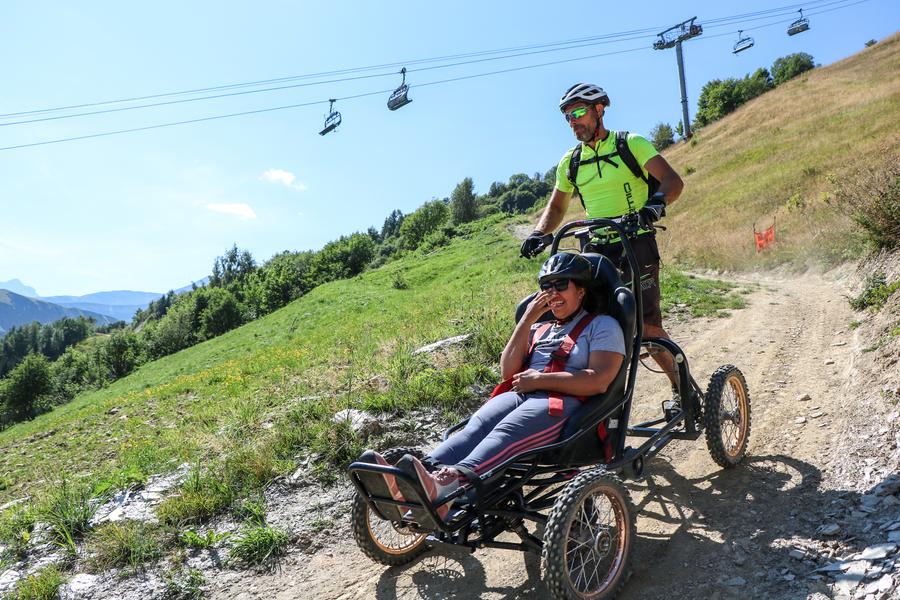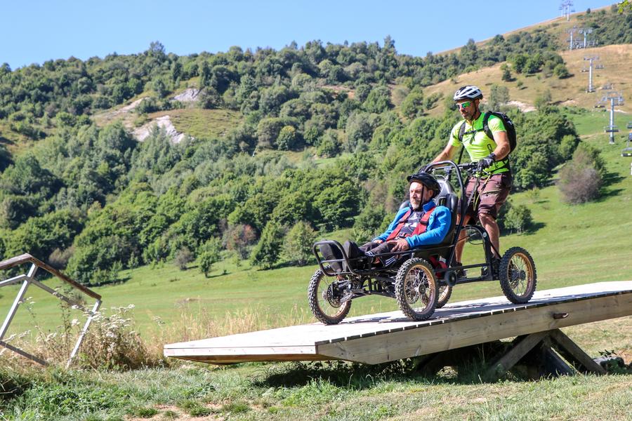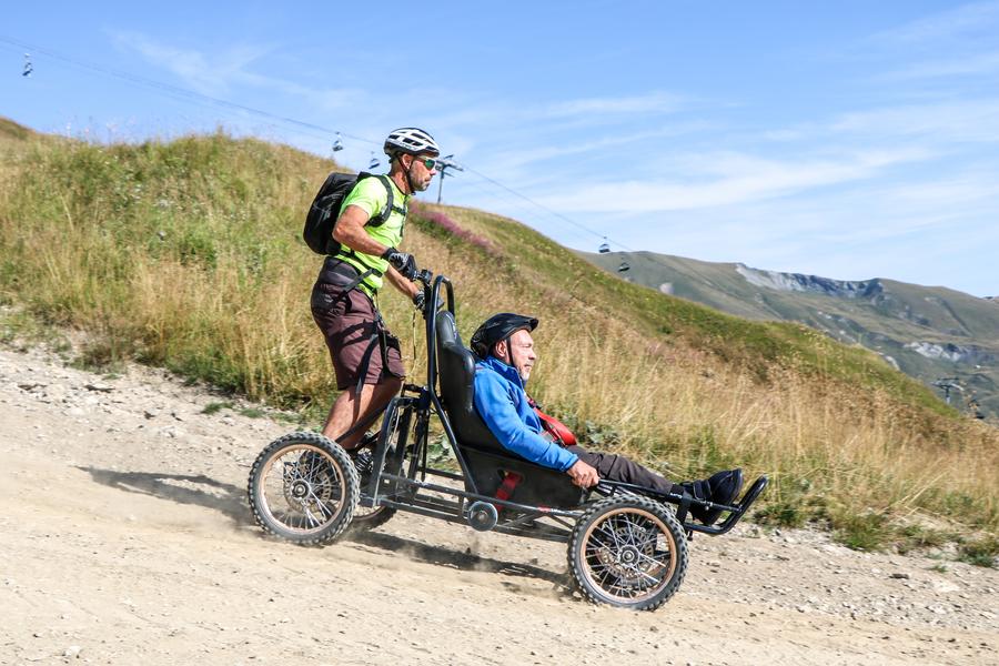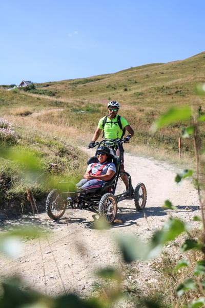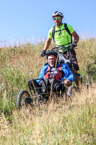 Een proefproject met terreinrolstoelen onder begeleiding van een gecertificeerde begeleider, voor mensen met en zonder beperking.
